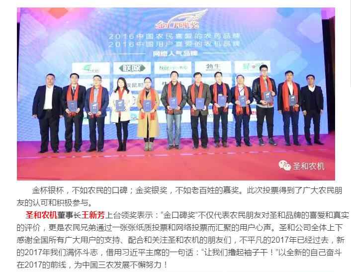 圣和農(nóng)機--“金口碑獎”中國用戶喜愛的農(nóng)機品牌