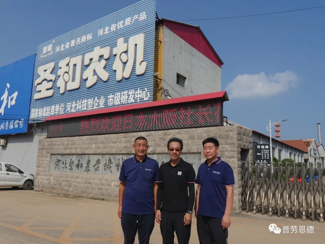 品質(zhì)傳美譽,客自遠方來。8月13日,日本大坂株式會社代表團一行4人,在大坂社長帶領下再次到訪河北圣和農(nóng)業(yè)機械有限公司進行參觀交流。圣和公司董事長王新芳、總經(jīng)理師西峰、總經(jīng)理助理王帥等公司高層領導熱情接待了大坂社長一行。