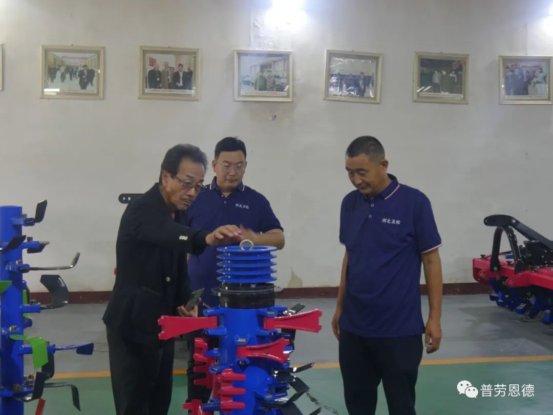 在圣和公司董事長王新芳的陪同下,大坂社長參觀了圣和公司農(nóng)機具的生產(chǎn)過程,并對圣和公司的生產(chǎn)管理、制造工藝、質(zhì)量管控等各生產(chǎn)環(huán)節(jié)進行了全面、深入的了解。