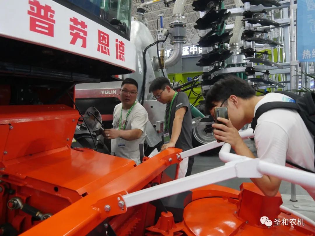 河北圣和農(nóng)業(yè)機(jī)械有限公司主營(yíng)產(chǎn)品包括:青貯機(jī)、殘膜回收機(jī)、打捆機(jī)、旋耕機(jī)、秸稈還田機(jī)、深松機(jī)、驅(qū)動(dòng)耙、水田攪漿機(jī)、旋耕播種機(jī)、液壓翻轉(zhuǎn)犁、根莖類(lèi)藥材收獲機(jī)、挖坑機(jī)、開(kāi)溝機(jī)等15大板塊、30多個(gè)系列、2000多種型號(hào),年生產(chǎn)能力8萬(wàn)臺(tái)套。此次展會(huì),圣和公司攜全新國(guó)四版青貯機(jī)、深松整地聯(lián)合作業(yè)機(jī)、旋耕機(jī)、秸稈切碎還田機(jī)等16款新品亮相展會(huì),真可謂“濃縮精華,彰顯經(jīng)典”。其中,全新國(guó)四版青貯機(jī)采用自主研發(fā)2.65m雙圓盤(pán)式割臺(tái),喂入順暢穩(wěn)定,適應(yīng)不同行距與高度的作物收獲;飼料切碎均勻,切段整齊,可怠速磨刀,切碎長(zhǎng)度四檔可調(diào);超耐磨技術(shù)籽粒破碎器,獨(dú)特設(shè)計(jì)齒形,破碎率95%以上;配備上柴310馬力渦輪增壓發(fā)動(dòng)機(jī),動(dòng)力強(qiáng)勁;采用靜液壓驅(qū)動(dòng)無(wú)極變速系統(tǒng),液壓助力轉(zhuǎn)向;配置電子自動(dòng)潤(rùn)滑系統(tǒng),針對(duì)籽粒破碎等主要機(jī)構(gòu)的軸承進(jìn)行潤(rùn)滑;獨(dú)特簡(jiǎn)便的喂入開(kāi)關(guān)設(shè)計(jì),拆卸、檢修方便快捷。