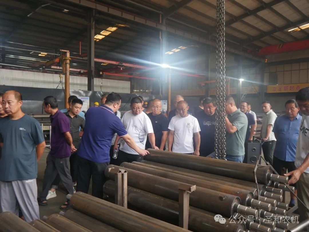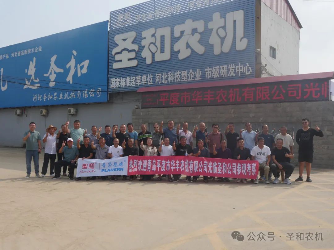 2024年8月14日,平度市農(nóng)機手、合作社代表40余人,在青島平度市華豐農(nóng)機有限公司陳秋里總經(jīng)理的帶領(lǐng)下,到河北圣和農(nóng)業(yè)機械有限公司進行實地參觀考察。圣和公司營銷管理中心總經(jīng)理郭廣彥對參觀團的來訪表示熱烈的歡迎,并熱情接待。