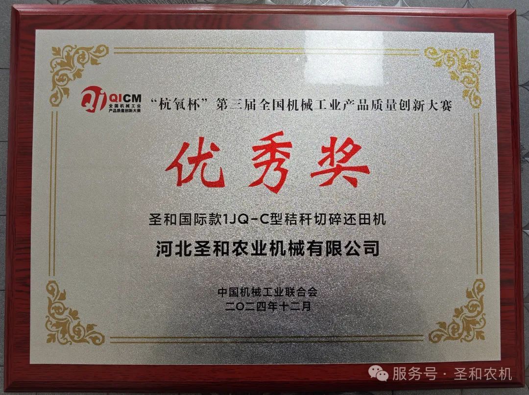 在2024年,“圣和牌還田機(jī)”又獲得質(zhì)量創(chuàng)新大賽優(yōu)秀獎(jiǎng)殊榮,再次證明了圣和公司在堅(jiān)持質(zhì)量第一、對(duì)標(biāo)國(guó)際先進(jìn)技術(shù)、以創(chuàng)新為第一動(dòng)力、促進(jìn)產(chǎn)業(yè)鏈供應(yīng)鏈質(zhì)量聯(lián)動(dòng)提升、助力傳統(tǒng)產(chǎn)業(yè)數(shù)智化方面的雄厚實(shí)力,為推動(dòng)農(nóng)業(yè)產(chǎn)業(yè)轉(zhuǎn)型升級(jí)和實(shí)現(xiàn)機(jī)械工業(yè)高質(zhì)量發(fā)展作出了突出貢獻(xiàn)。