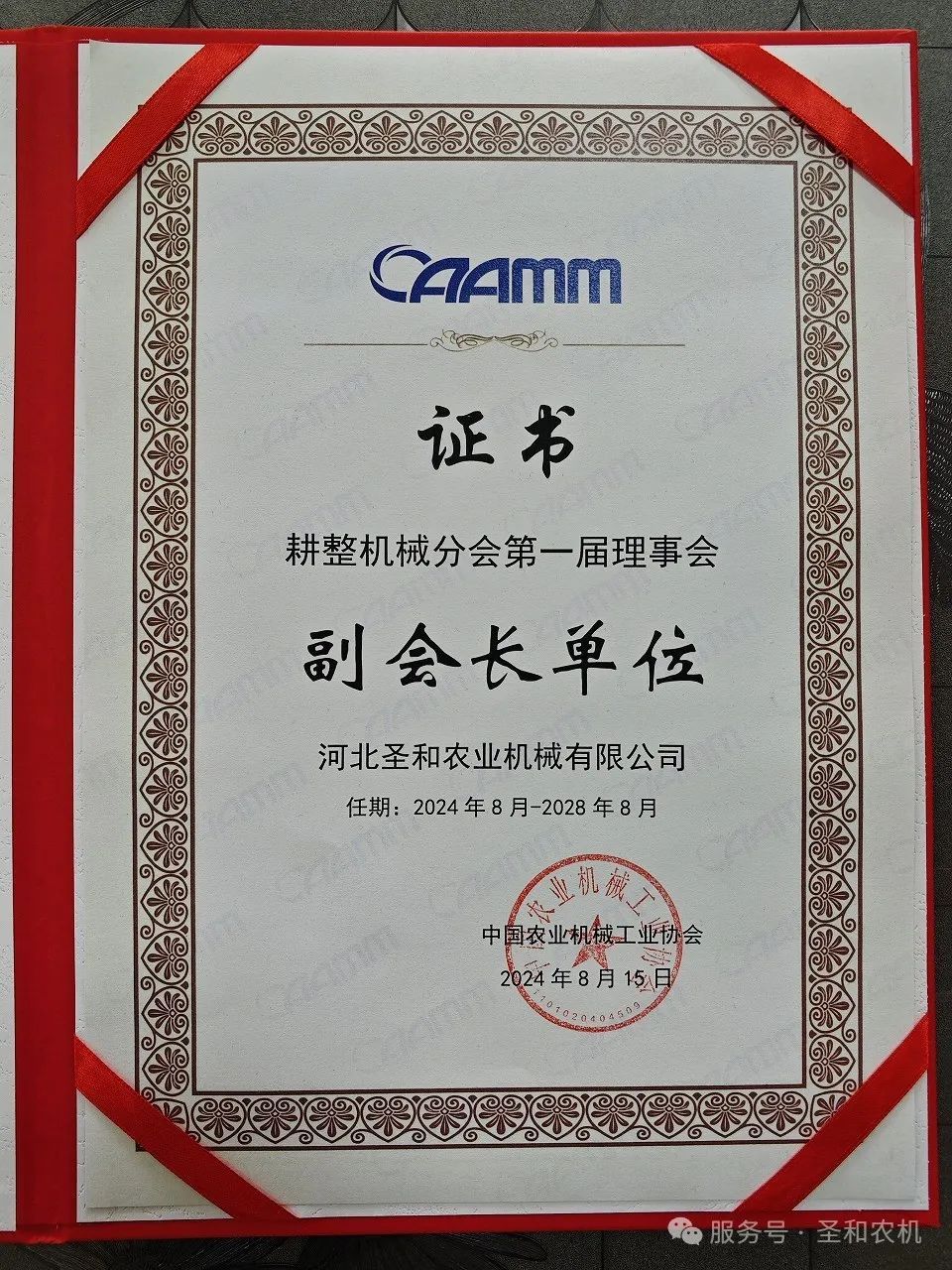 圣和公司此次被推選為耕整機(jī)械分會(huì)第一屆理事會(huì)副會(huì)長(zhǎng)單位,是中國(guó)農(nóng)業(yè)機(jī)械工業(yè)協(xié)會(huì)及行業(yè)同仁對(duì)圣和公司耕整機(jī)械技術(shù)和公司實(shí)力的認(rèn)可與肯定。圣和公司定將不忘初心、不負(fù)眾望、砥礪前行,繼續(xù)聚焦耕整機(jī)械技術(shù)與產(chǎn)品創(chuàng)新,持續(xù)探索耕整機(jī)械生態(tài),加快形成新質(zhì)生產(chǎn)力,與中國(guó)農(nóng)業(yè)機(jī)械工業(yè)協(xié)會(huì)及耕整機(jī)械分會(huì)的行業(yè)同仁攜手推動(dòng)高端耕整農(nóng)業(yè)裝備產(chǎn)業(yè)的高質(zhì)量發(fā)展,為我國(guó)實(shí)現(xiàn)全面鄉(xiāng)村振興作出貢獻(xiàn)。
