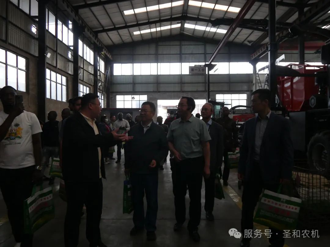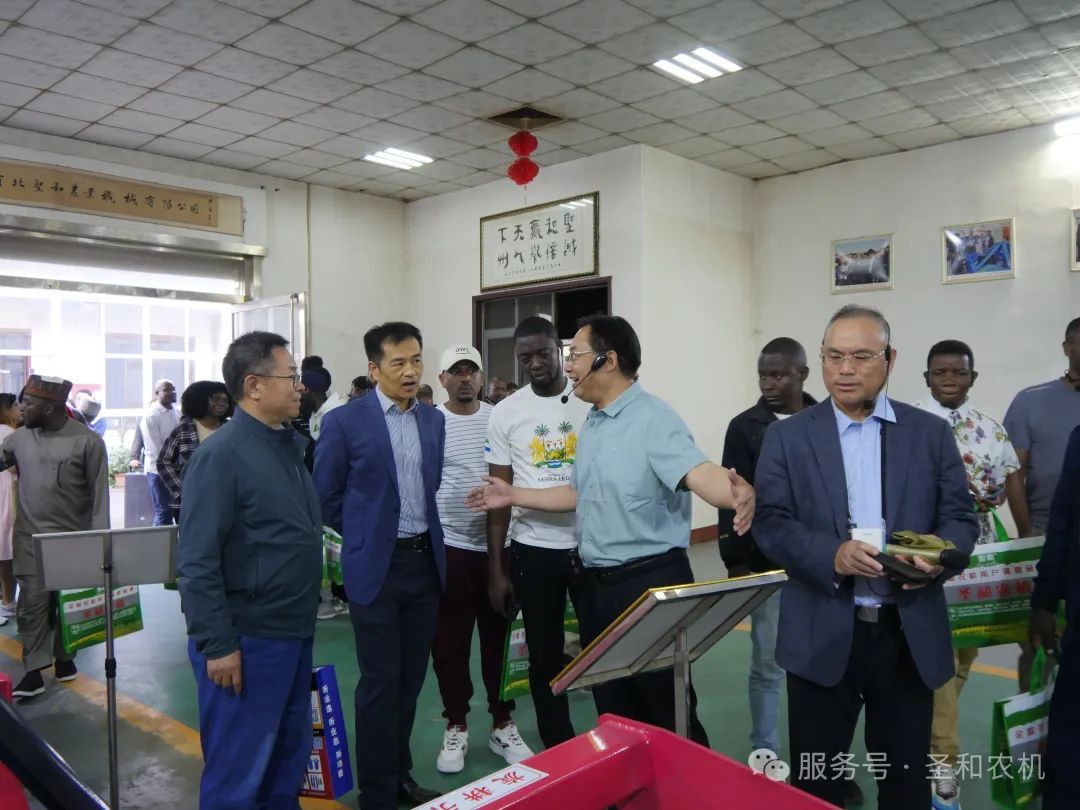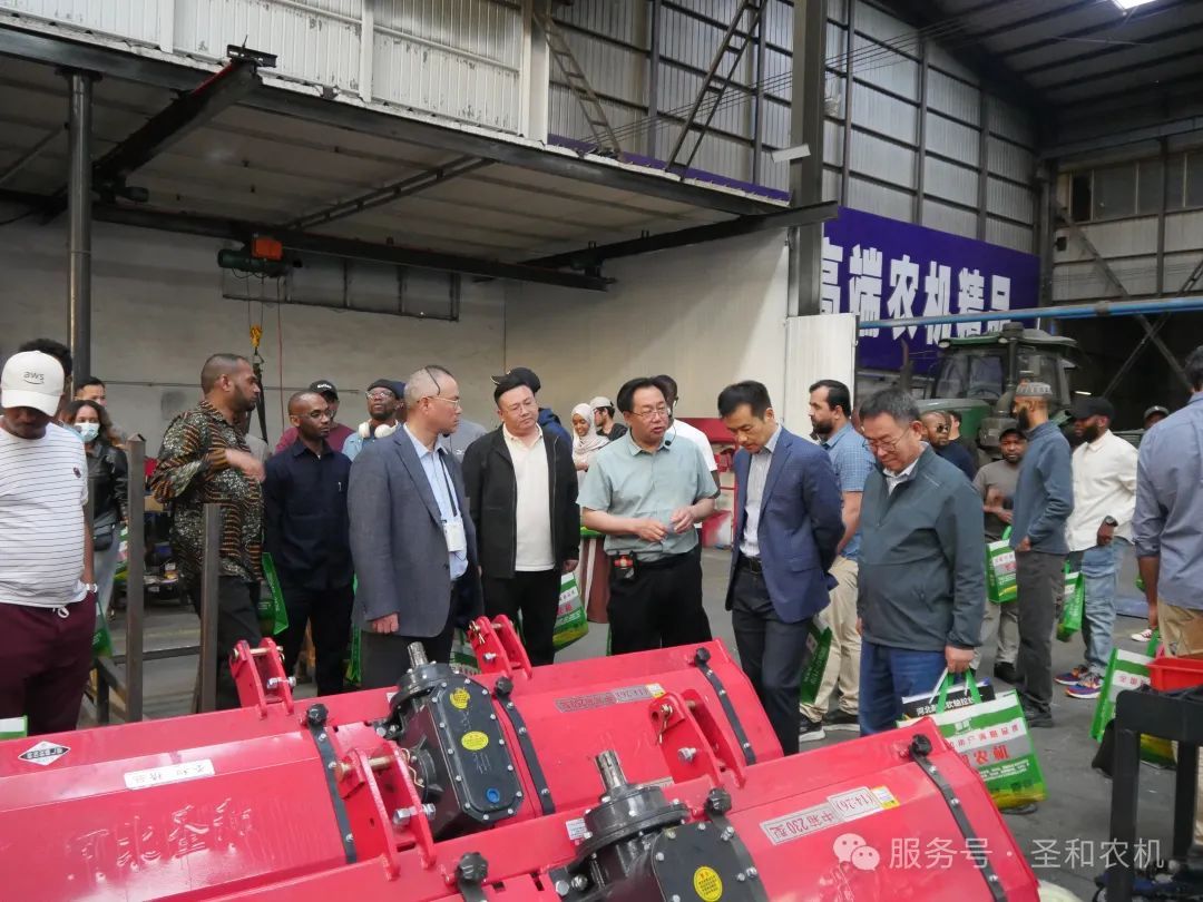 在考察過程中,河北圣和農(nóng)業(yè)機(jī)械有限公司營銷管理中心總經(jīng)理郭廣彥、副周經(jīng)理王周廣熱情接待了考察團(tuán),并詳細(xì)介紹了公司的發(fā)展歷程、產(chǎn)品線、技術(shù)創(chuàng)新成果以及在國際市場上的應(yīng)用情況??疾靾F(tuán)成員們深入生產(chǎn)車間,實(shí)地觀摩了先進(jìn)的農(nóng)業(yè)機(jī)械生產(chǎn)流程,對各類農(nóng)業(yè)機(jī)械的制造工藝和技術(shù)原理表現(xiàn)出濃厚的興趣。