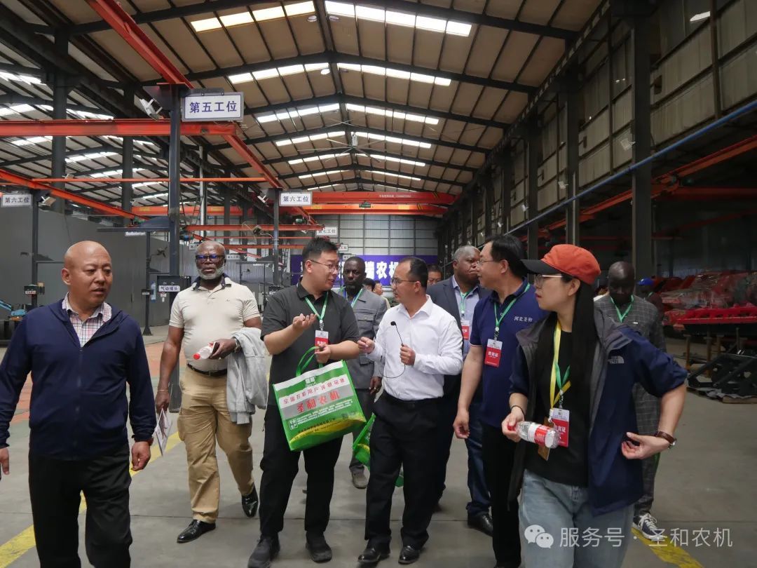 2025年4月28日,由喀麥隆權(quán)力下放和地方發(fā)展部合作主任翁杜瓦·塞爾日·埃爾韋率領(lǐng)的喀麥隆代表團(tuán)一行30位嘉賓,來到河北圣和農(nóng)業(yè)機(jī)械有限公司考察交流。此次考察不僅是中喀雙方在經(jīng)濟(jì)領(lǐng)域交流的重要活動,也為未來雙方在農(nóng)業(yè)機(jī)械領(lǐng)域的合作奠定了基礎(chǔ)。