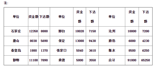 靈壽縣 | 650 | 460 | 昌黎縣 | 1000 | 700 | 邢臺(tái)高開區(qū) | 200 | 150 |