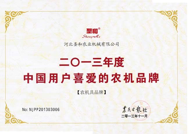 河北圣和《中國喜愛農(nóng)機(jī)品牌》