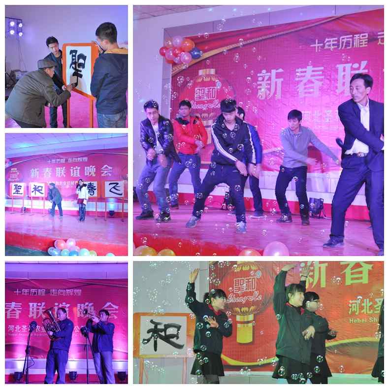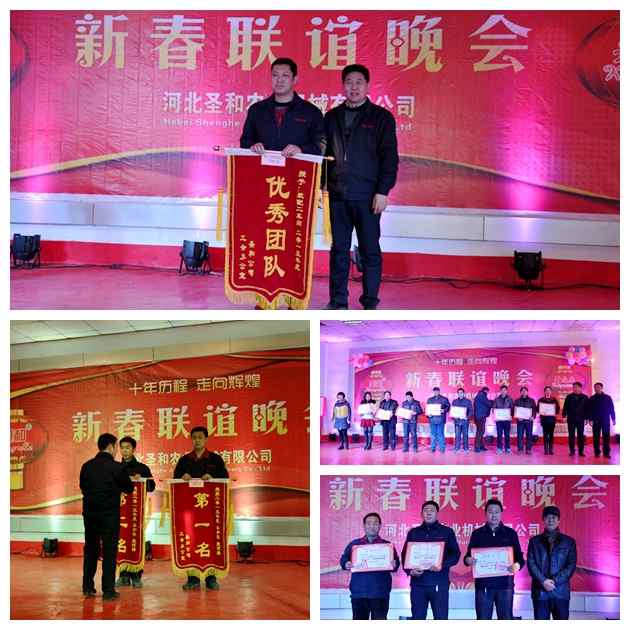 晚會(huì)在下午3點(diǎn)開(kāi)始。首先播放了公司精心制作的公司宣傳視頻,回顧了公司的創(chuàng)業(yè)歷程和輝煌業(yè)績(jī);隨后公司董事長(zhǎng)王新芳、總經(jīng)理師西峰、副總經(jīng)理蘇山嶺一一發(fā)言,之后舉行了頒獎(jiǎng)儀式,評(píng)選出了公司團(tuán)隊(duì)獎(jiǎng)、個(gè)人優(yōu)秀獎(jiǎng)、技能比賽獎(jiǎng)、拔河比賽等一系列獎(jiǎng)項(xiàng);隨后以公司中高層精心準(zhǔn)備的《團(tuán)結(jié)就是力量》這首歌拉開(kāi)了帷幕,團(tuán)結(jié)就是力量,這力量是鐵、這力量是鋼,比鐵還硬、比鋼還強(qiáng),展現(xiàn)出了圣和公司2016年打造團(tuán)隊(duì)建設(shè)的信心和決心。