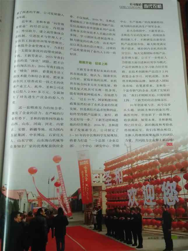 2016 年 3 月 6 日 是 河 北 圣 和 農(nóng) 業(yè) 機(jī) 械 有 限 公 司 ( 以 下 簡 稱圣 和 ) 值 得 紀(jì) 念 的 日子。