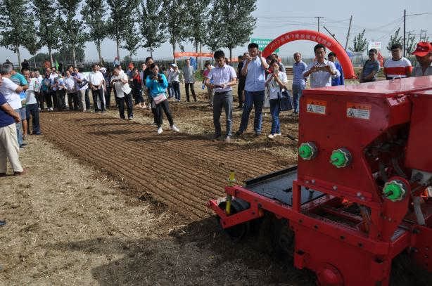 2017年9月22日,全國小麥秋播現(xiàn)場觀摩暨技術培訓班在石家莊市辛集市隆重舉行。此次觀摩會由農業(yè)部全國農技中心主辦,河北省農業(yè)技術推廣總站牽頭,河北省農機修造站承辦。來自天津、河北、山西、上海、江蘇、安徽、山東、河南、陜西、湖北、重慶、四川、甘肅、貴州等?。ㄗ灾螀^(qū)、直轄市)農業(yè)技術推廣站(總站)代表、有關專家等200余人參加了此次觀摩會。圣和農機攜旗下播種神器---2BFSG-12(12)(200)深松旋耕施肥撒播機亮相并且現(xiàn)場作業(yè)演示。