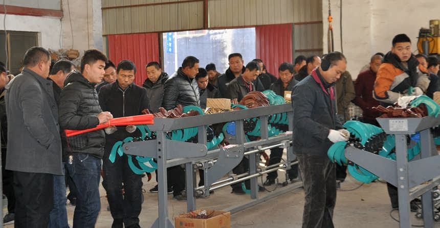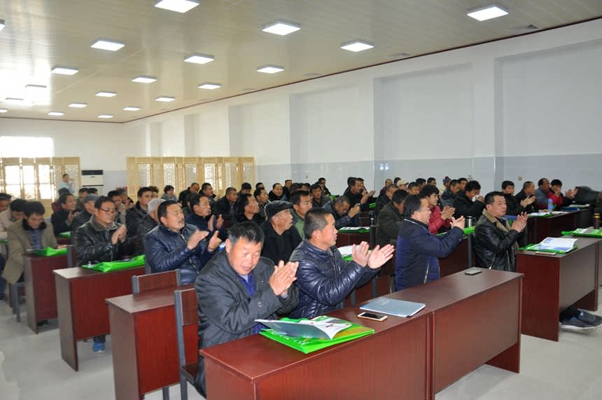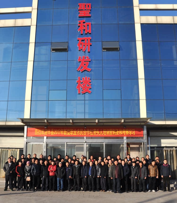 2017年12月16日上午,江蘇省豐縣2017年新型職業(yè)農(nóng)民合作社帶頭人培訓(xùn)營70余名學(xué)員,在豐縣農(nóng)機局市場辦蔣主任,豐縣農(nóng)機推廣站蔣站長,豐縣三農(nóng)公司負責人劉豐經(jīng)理帶領(lǐng)下,來到河北圣和農(nóng)業(yè)機械有限公司考察學(xué)習(xí)。圣和公司總經(jīng)理師西峰熱情接待了全體學(xué)員,并陪同參觀了公司生產(chǎn)工藝過程,營銷中心技術(shù)人員以“今天攜手合作 明天成就夢想”為題,作了專題技術(shù)講座。