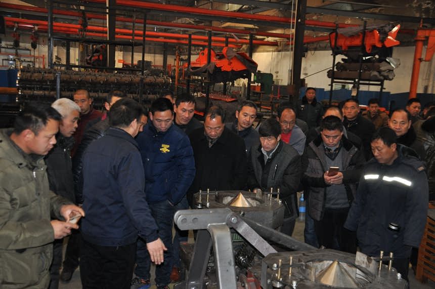 在裝配車間的旋耕機和打漿機裝配流水線旁,學(xué)員們對裝配工藝同樣饒有興趣。尤其是看到旋耕機刀片在出廠前已經(jīng)裝配完善,學(xué)員們表示贊揚。在過去,為了方便運輸,刀片是在經(jīng)銷商那里裝配的,往往容易出現(xiàn)錯裝刀片,螺栓緊固不合格等問題!在參觀到圣和公司的成品倉庫時,學(xué)員們仿佛來到旋耕機的海洋,工作人員介紹說,圣和公司為適應(yīng)全國市場需要,在產(chǎn)的產(chǎn)品就有200多種,多數(shù)型號的產(chǎn)品都能做到隨時供貨。學(xué)員們被不同顏色和型號的產(chǎn)品深深吸引著,無不驚訝無比,并在此合影留念,記錄這次非凡之旅!