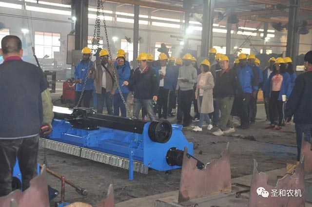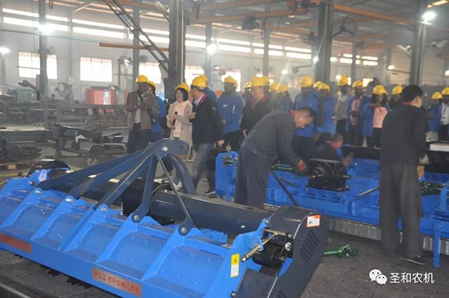 之后,參觀車間生產(chǎn)制造工藝,在過程中講解每一個(gè)生產(chǎn)制作環(huán)節(jié),對旋耕機(jī)、還田機(jī)等多種機(jī)具的工作原理、效果與土地適用性作出講解,參觀完畢后客人對圣和公司生產(chǎn)工藝與產(chǎn)品給予高度肯定。