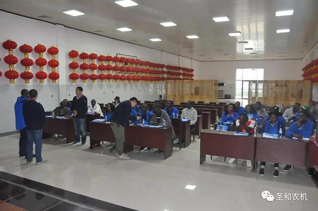 下午(10月24日),營銷總經(jīng)理張培增先生,在公司培訓(xùn)中心為來訪人員進(jìn)行農(nóng)機(jī)知識培訓(xùn)學(xué)習(xí),經(jīng)過了參觀學(xué)習(xí)與了解,尼日利亞來訪代表表達(dá)了與公司的合作意向并對此進(jìn)行商談,為農(nóng)機(jī)行業(yè)在中國一帶一路的偉大建設(shè)順利進(jìn)行添磚建瓦,在這次學(xué)習(xí)與參觀中,雙方都收獲滿滿。