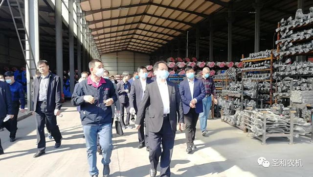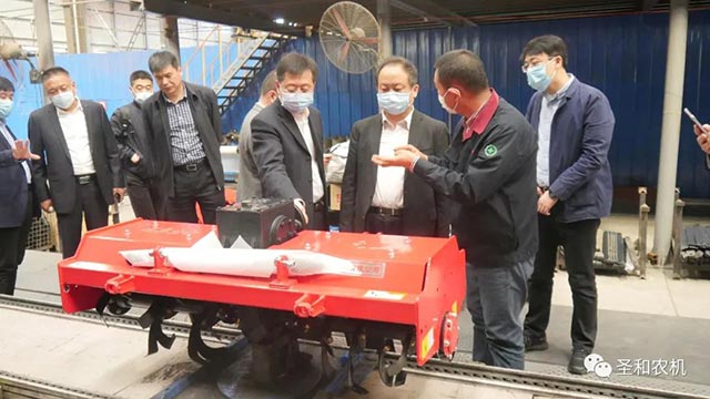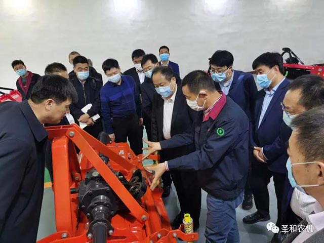 在參觀考察過(guò)程中,董事長(zhǎng)詳細(xì)介紹每一個(gè)生產(chǎn)制作環(huán)節(jié),不同農(nóng)機(jī)的作用與特點(diǎn),參觀完畢后領(lǐng)導(dǎo)對(duì)圣和公司的管理模式、生產(chǎn)工藝等給予高度評(píng)價(jià),并給出了提升建議。