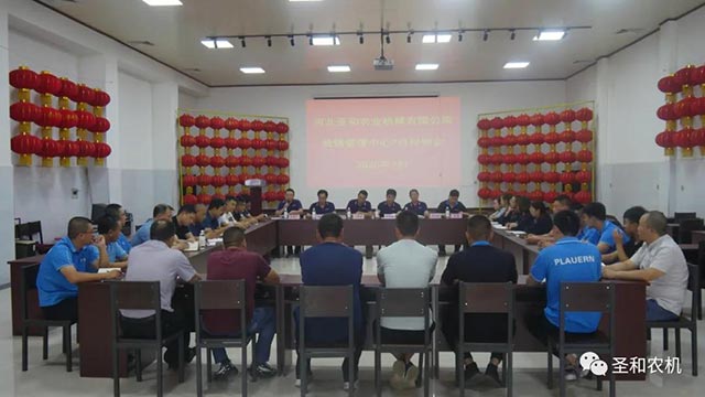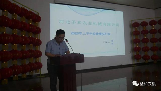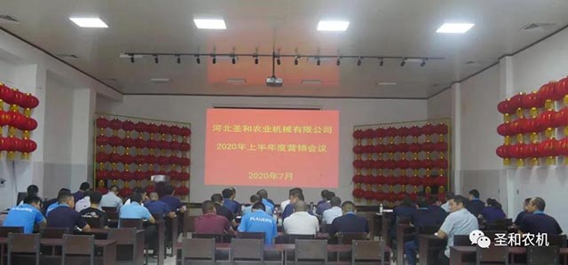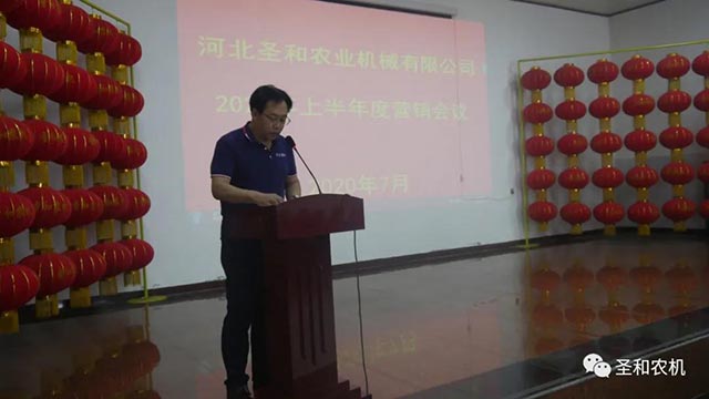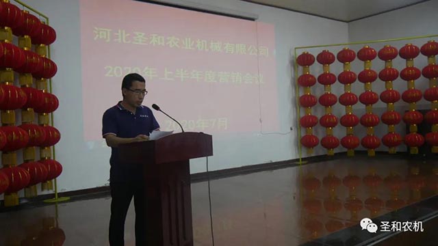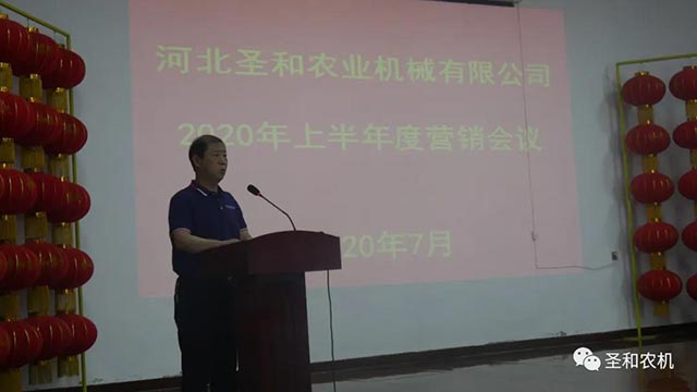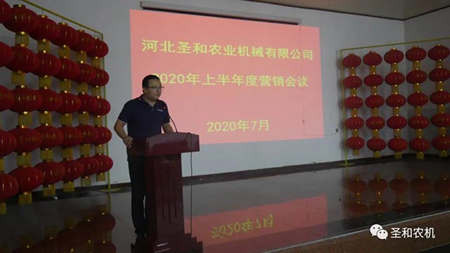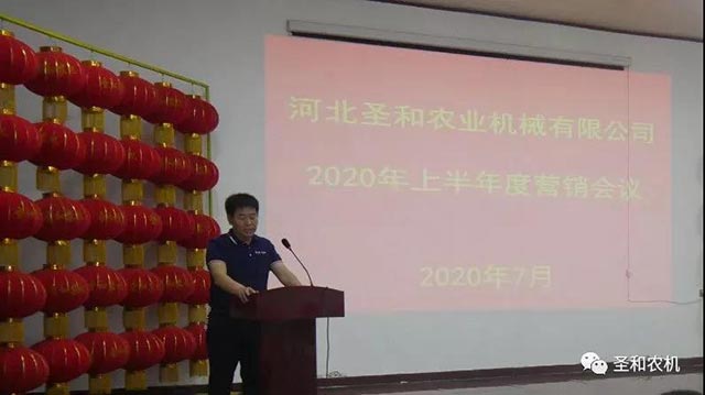 7月13日上午,河北圣和農(nóng)業(yè)機(jī)械有限公司隆重召開2020年上半年?duì)I銷會議。本次會議由營銷數(shù)據(jù)通報(bào)、市場經(jīng)驗(yàn)分享、生產(chǎn)促銷措施、營銷工作重點(diǎn)、公司領(lǐng)導(dǎo)講話等五部分組成。