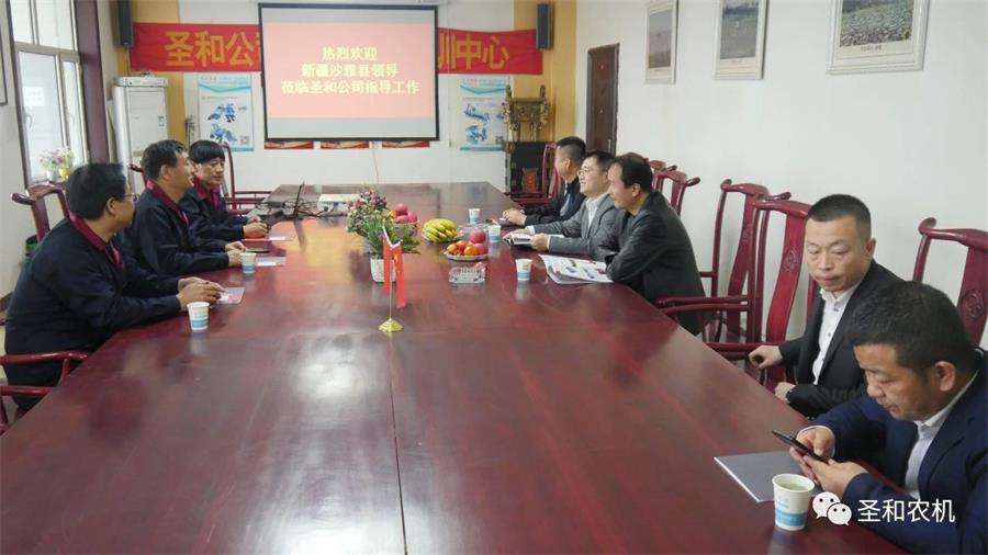 2021年4月1日,新疆沙雅縣常委副縣長(zhǎng)胡亞?wèn)|、商務(wù)和工業(yè)信息化局書(shū)記余旭、工商聯(lián)主席靳紹陶一行蒞臨圣和參觀考察!公司董事長(zhǎng)王新芳熱情接待!