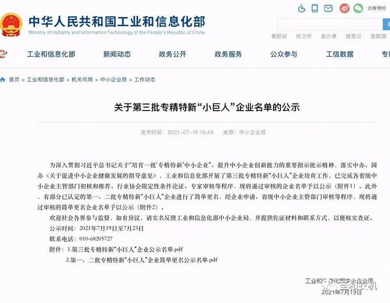 圣和榜上有名|國家工信部公布國家級第三批專精特新“小巨人”企業(yè)名單