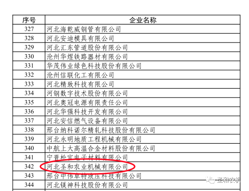 河北圣和農(nóng)業(yè)機械有限公司榮登上榜,是圣和獲得的權(quán)威認(rèn)證,正是創(chuàng)新發(fā)展才成功躋身專精特新“小巨人”國家隊。