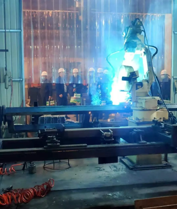 之后,依次對下料車間、焊接車間、噴涂車間、組裝等車間進行了參觀。在參觀過程中,孫明濤