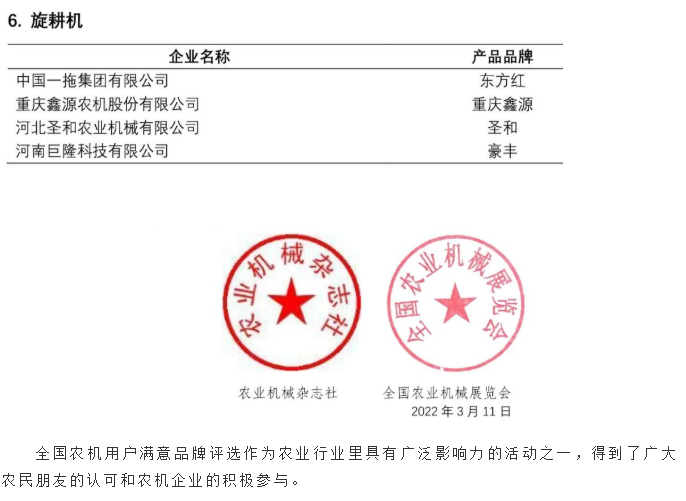 農機用戶滿意品牌(CSI)”評選活動,經過企業(yè)線上申報、網上投票點評、專家評審,共