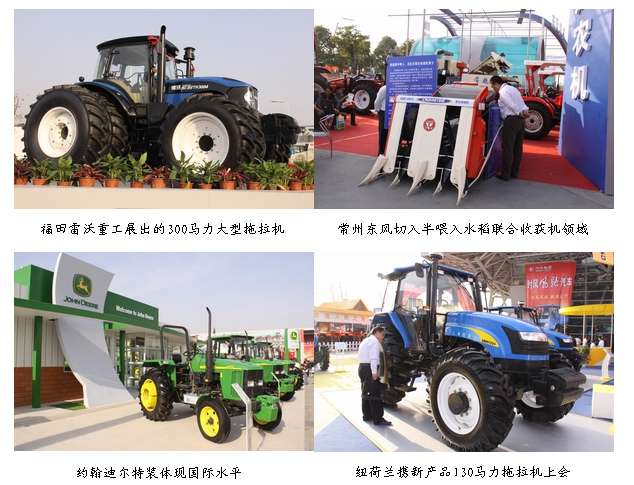 這次參展的企業(yè)在會(huì)上集中展示了品種最全、性能優(yōu)良、技術(shù)先進(jìn)的各種農(nóng)業(yè)機(jī)械產(chǎn)品。在展臺(tái)特裝設(shè)計(jì)上,突出顯示了企業(yè)的發(fā)展成績(jī)與國(guó)際接軌的水平。福田雷沃重工、山東時(shí)風(fēng)集團(tuán)、中國(guó)一拖、山東五征、常州東風(fēng)等國(guó)內(nèi)農(nóng)機(jī)龍頭企業(yè)均攜帶企業(yè)最為先進(jìn)的產(chǎn)品參加了會(huì)議,參展面積也為歷年來(lái)最大,體現(xiàn)了企業(yè)的強(qiáng)大實(shí)力;約翰迪爾中國(guó)市場(chǎng)部、久保田(蘇州)、上海紐荷蘭等企業(yè)的展臺(tái)特裝創(chuàng)意獨(dú)具一格,成為展覽場(chǎng)館中亮麗的風(fēng)景線。