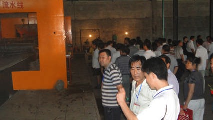 各級領(lǐng)導(dǎo)、各地經(jīng)銷商在公司車間參觀還田機(jī)生產(chǎn)流水線